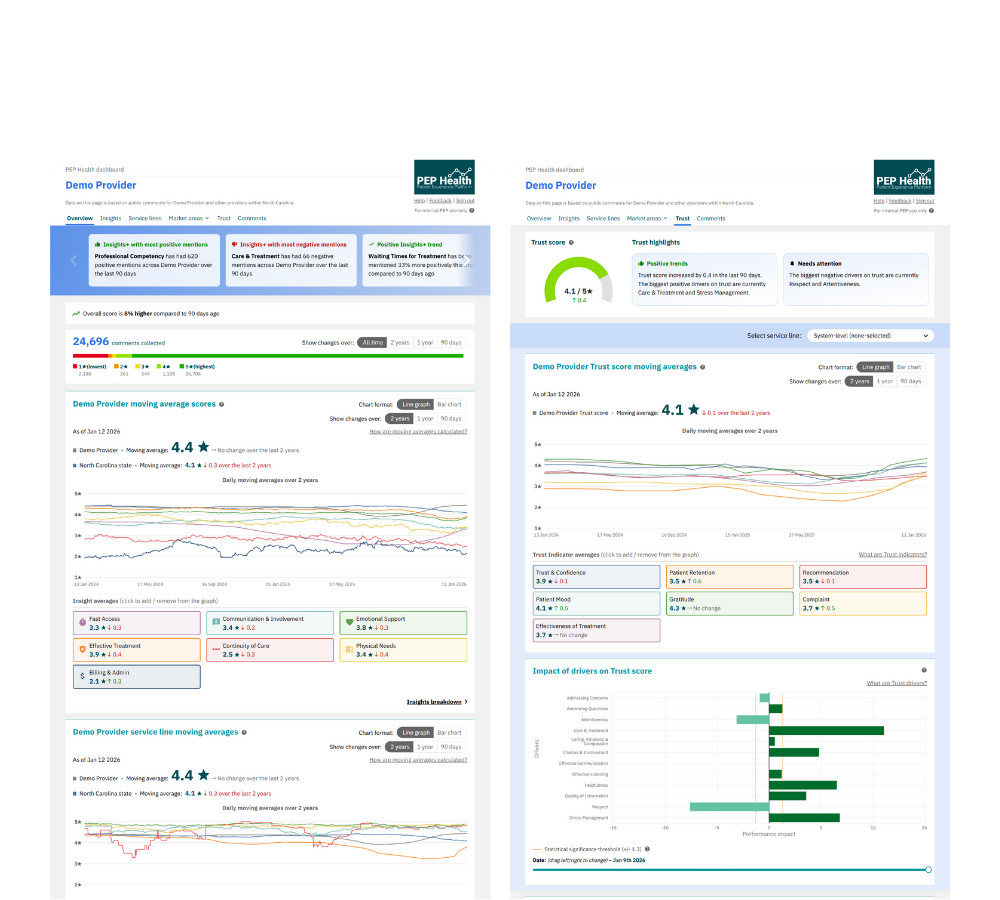 PEP Health turns what patients are already saying online into clear experience and trust signals to drive better clinical, financial, operational, and reputational outcomes